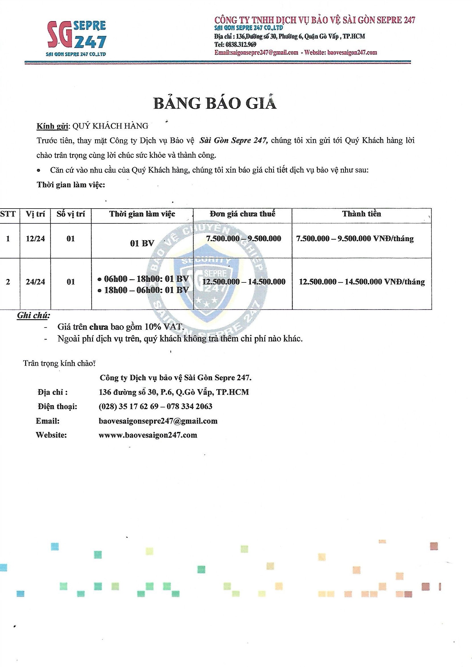 CÔNG TY TNHH DỊCH VỤ BẢO VỆ SÀI GÒN SEPRE 247